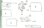 レポート用紙の上に、スライドを「上下逆に」おいて(顕微鏡で見ると上下は逆さまになりますからね)、見えるママ絵をかきます。(図の①のところ) 右下に「x1」とか書いておくといいですね。他のスケッチの所でも、倍率は書いておいたほうがいいです。